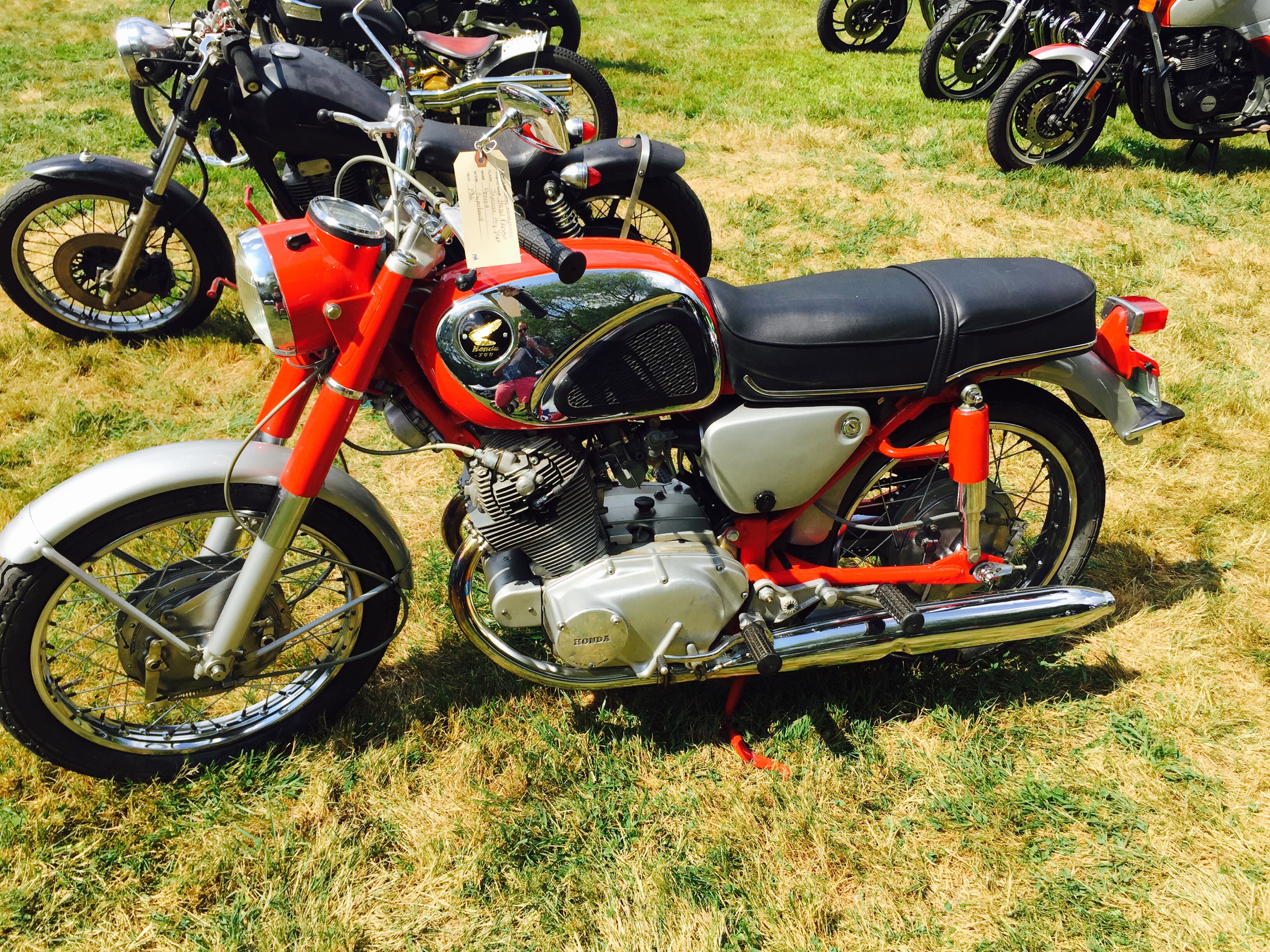 Last in the chrome department (but certainly not least) was a 1966 Honda 300, sort of the “son” of the Honda Dream. It confirms that white, red, grey and black (in no specific order) is the perfect colorway for any two-wheeled machine.
