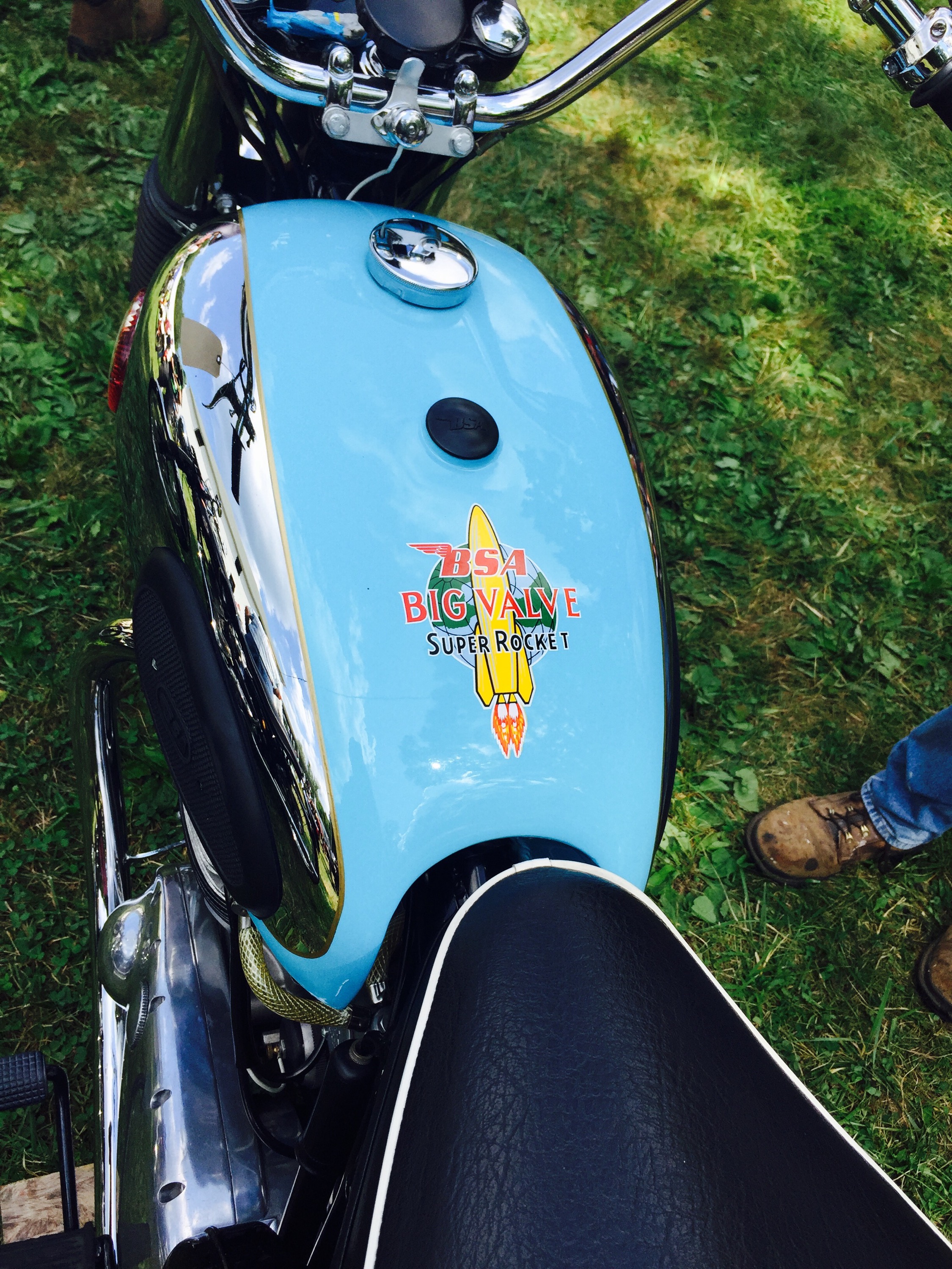 One of the afternoon’s crown jewels was this Skye-blue-and-chrome BSA Super Rocket.